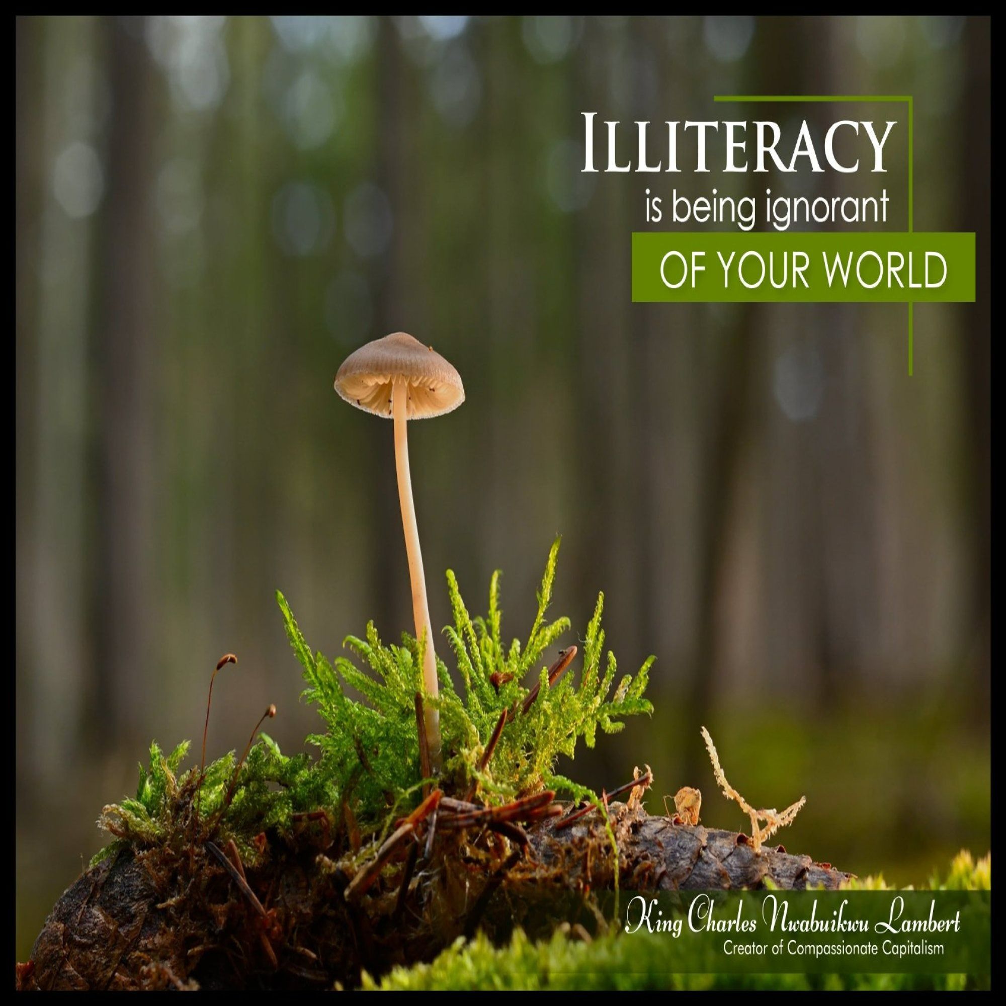 striking quote, "Illiteracy is being ignorant of your world," by King