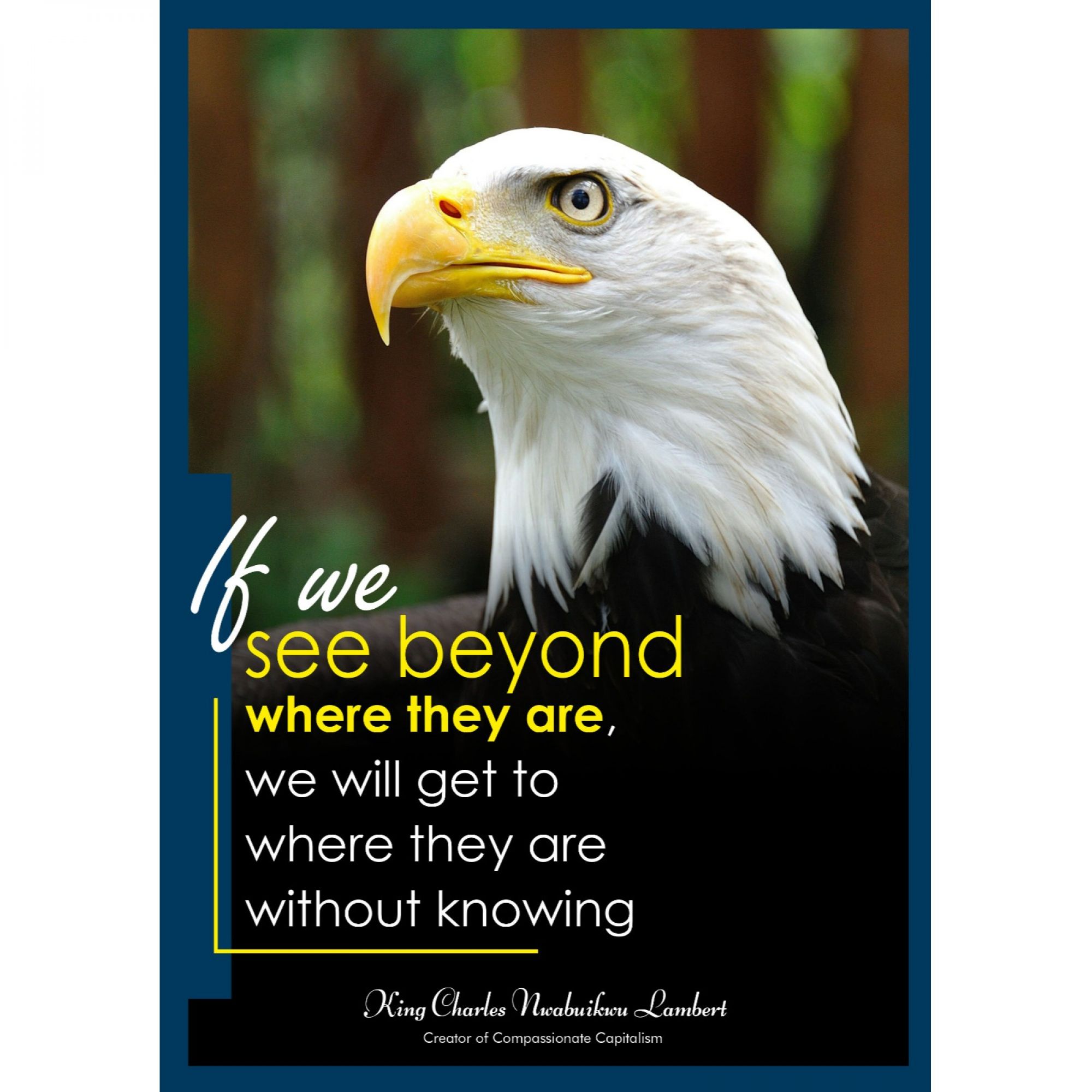 Unlock new perspectives with "VISION", an inspiring wall portrait that highlights the power of foresight and understanding. Featuring the quote, "If we see beyond where they are, we will get to where they are without knowing," by King Charles Nwabuikwu Lambert, this piece serves as a reminder that true progress comes from looking ahead and learning from others.